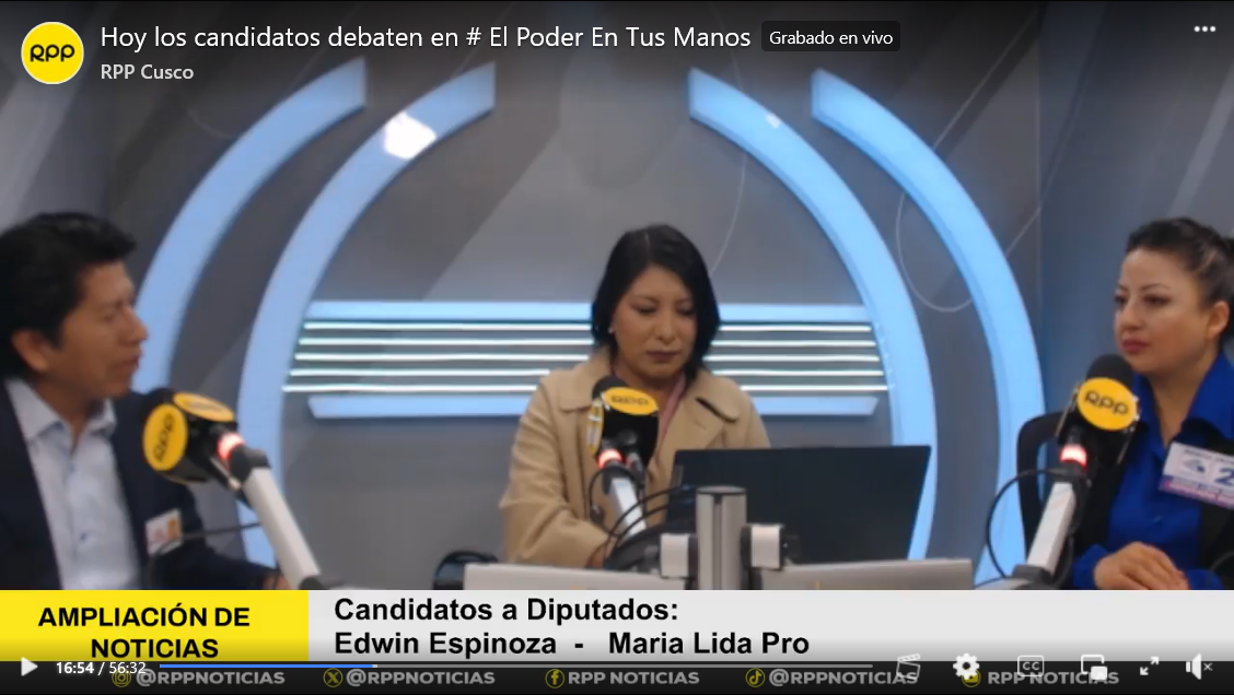 En el marco del proceso electoral, María Lida Pro participó hoy en el programa “El Poder en Tus Manos”, espacio de debate que reunió a candidatos para exponer sus propuestas y dialogar sobre los principales desafíos que enfrenta la región.
